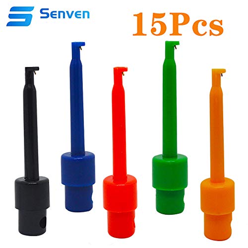 Senven 15pcs Mini Clip gancio di prova multimetro, rosso × 3 blu × 3 nero × 3 giallo × 3 verde × 3 per strumenti di riparazione, test probe hook, test gancio grabber, clip gancio ic.
