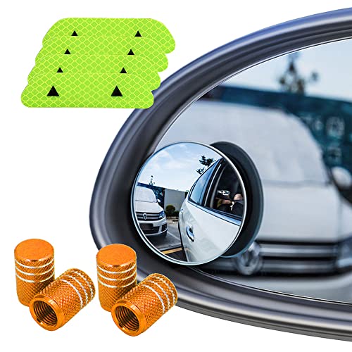 Senven Blind Spot Specchi (2) + Adesivi Riflettenti (4) + Coperchio Valvole (4), specchio retrovisore convesso rotante a 360 °, specchio retrovisore in vetro HD HD grandangolare impermeabile.