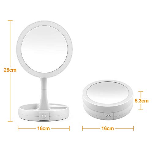 Senwow - Specchio da trucco con luce, 1 x 10 x specchio ingranditore con luce autoportante da tavolo compatto pieghevole, doppio alimentatore LED specchio