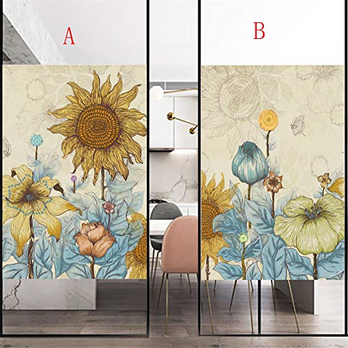 Senza Colla Decorativa Privacy Pellicola per vetri smerigliata Stile Classico Motivo Girasole Porta in Vetro Copertura per finestre Decalcomanie per finestre Adesivo per finestre 40x90cm