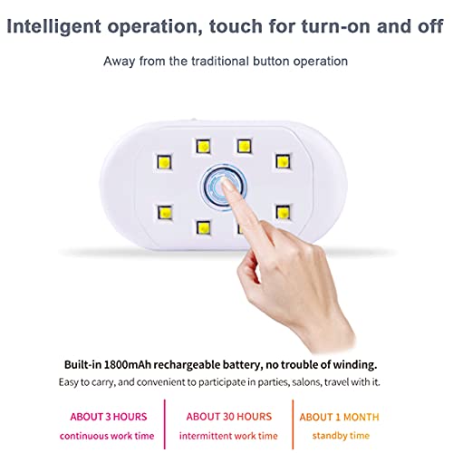 Luce per unghie ricaricabile da 16 W: con la batteria integrata da 1800 mAh, ad alta capacità. Puoi portarlo come ti piace, ad esempio, viaggi, feste, conferenze e matrimoni.