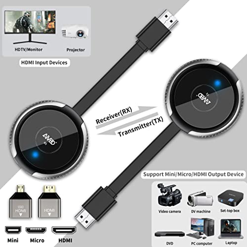 Trasmettitore e ricevitore HDMI wireless: 165 piedi/50 m di portata ampia e bassa latenza: mostra il miglior effetto di trasmissione quando viene utilizzato nella stessa stanza. Questo trasmettitore HDMI e ricevitore ha una distanza di trasmissione fino a 100 piedi e una bassa latenza di 0,2 s senza interferenze. Nota: la distanza di trasmissione viene ridotta a 10 ft/3 m se utilizzata su una parete.
