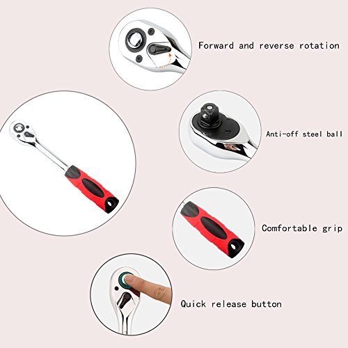 SENZEAL 3/8" Manico diritto Chiave a cricchetto a 72 denti chiave rapida strumento di riparazione automatica in acciaio al cromo-vanadio