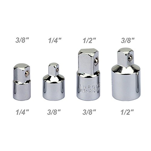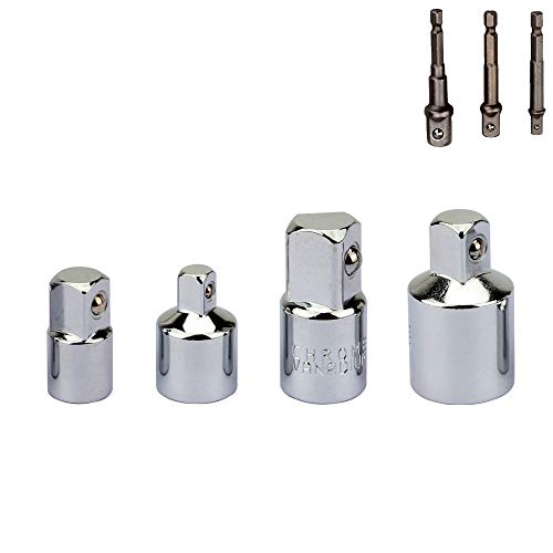 SENZEAL 4x Cr-V Socket Converter Reducer with 3x Cr-V Hex Square Nut Driver Socket Drill Adapter Set 1/4" 3/8" 1/2"
