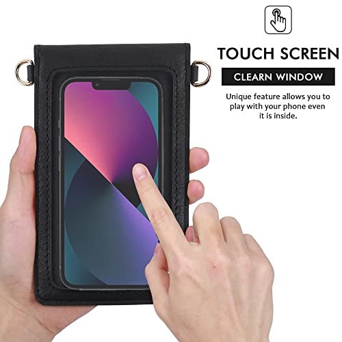 Seosto, borsa a tracolla da donna, piccola con schermo touch e finestra trasparente per iPhone Samsung Smartphone sotto i 6,5 pollici, Nero (Nero ), Small