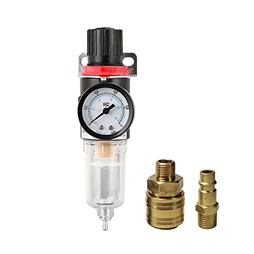 Riduttore di pressione dell'aria compressa: il regolatore dell'aria compressa è un'efficiente unità di manutenzione con filtro e separatore dell'acqua per l'uso su compressori. L'unità di manutenzione ad aria compressa da 1/4" prolunga la durata dei vostri utensili ad aria compressa in quanto protegge da particelle di sporco, acqua e impurità chimiche.
