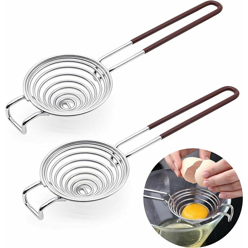 Design a forma di setaccio: il filtro del tuorlo d'uovo con un design a forma di setaccio e la struttura a spirale delle bobine metalliche, con cui l'albume può essere facilmente filtrato . E una corretta spaziatura delle spire della molla può impedire la perdita del tuorlo. Il colino per uova è estensibile e malleabile. Manico lungo e gancio: la lunghezza totale di 25 cm. Setaccio per uova con gancio per ciotole di diverse dimensioni. Puoi posizionare il separatore di uova sulla ciotola, rompere le uova liberamente con entrambe le mani e non devi preoccuparti che mani sporche o frammenti di guscio d'uovo cadano nella ciotola. Separazione immediata e completa: quando rompi l'uovo nel separatore di albume, bastano pochi secondi per separare l'albume dal tuorlo senza aspettare . Risparmia tempo e fatica e non devi scuotere il filtro giallo. Facile da pulire e conservare: dopo l'uso, è sufficiente sciacquare il separatore di proteine con acqua o immergerlo in acqua tiepida per alcuni