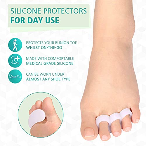 Uso di giorno e notte: le piastre per dita in gel sono per uso notturno e quotidiano. Se il separatore per le dita scivoloso, puoi indossarli in calze quando dormi per tutta la notte o indossali quando guardi la TV, cammini, corsa, fai yoga e altri attivi durante il giorno, non più di 5 ore