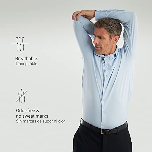 Grazie alla nostra tecnologia facciamo funzionare meglio i tuoi vestiti e risparmiamo tempo nella tua vita quotidiana. È antimacchia e antirughe. Previene gli odori e le macchie di sudore. È traspirante e ad asciugatura rapida. E il tessuto ha un'attività antivirale e antibatterica.