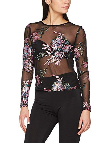 New Look Sequin Floral Mesh T-Shirt Donna