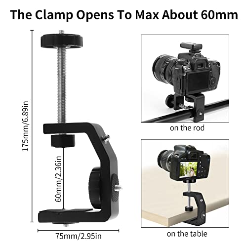 Morsetto a C per fotocamera. La larghezza massima della clip a C per fotocamera è di circa 60 mm e può essere posizionato su scrivania, treppiede, ringhiera, ecc. nan La clip a C ideale per diverse esigenze di registrazione.