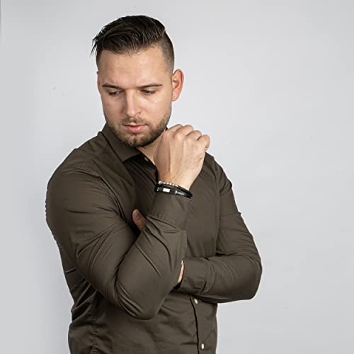 STILE - Il bracciale da uomo nero è l'accessorio perfetto per completare il tuo look. Il suo design semplice ed elegante con la pelle intrecciata attira sicuramente occhi curiosi