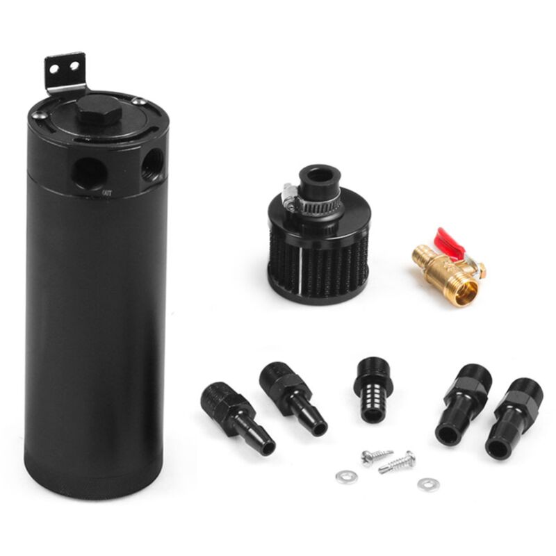 Nero Universale 3/8 "NPT Billet Alluminio Sconcertato 2-Port Oil Catch Can Serbatoio con Filtro Sfiato Motore Mini separatore olio 100% Nuovo Mai Usato O Installato ADATTA PER: Alluminio Billet Universale Oil Catch Can Serbatoio con Filtro Sfiato MATERIALE: Fare con di Alta Qualità 100% Billet, 6061 di Alluminio, Superficie Anodizzata. FUNZIONE: con questo olio di cattura si può mantenere pulito il motore sotto duro condizioni di guida permettendo "cleaner" gas per essere passato di nuovo in aspirazione. NOTA: Fatto di metallo, ci può essere una piccola quantità di bave nel prodotto. Si prega di aprire il oliatore e verificare se il oliatore è normalmente aperto e gli accessori sono completi prima dell'uso. Caratteristiche e Vantaggi: Cattura olio Può di Sfiato del Serbatoio Nero di Sfiato filtro staffa di montaggio regolabile Rubinetto Scolapiatti lato sinistro porta di ingresso lato Destro porta presa Incluso tubo sbavature: 9.5 millimetri e 12.7 millimetri spina di adattatore è