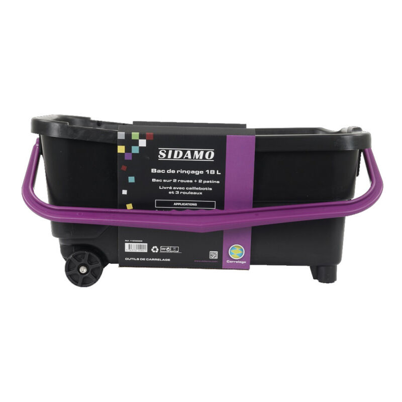 Serbatoio di risciacquo a 2 ruote Sidamo 18L Pulizia delle fughe delle piastrelle su grandi superfici Uso regolare Vantaggi della vaschetta Sidamo: Progettato per strizzare la spugna galleggiante Vaschetta su 2 ruote e 2 pattini antiscivolo per una maggiore stabilità e comodità di spostamento 3 rulli per strizzare in modo ottimale il frattazzo di spugna Vassoio di raccolta Vaschetta profonda per mantenere pulita la superficie dell'acqua Caratteristiche tecniche: Capacità: 18 litri Dimensioni: L560 x L300 x H260 mm Peso netto: 2,30 kg