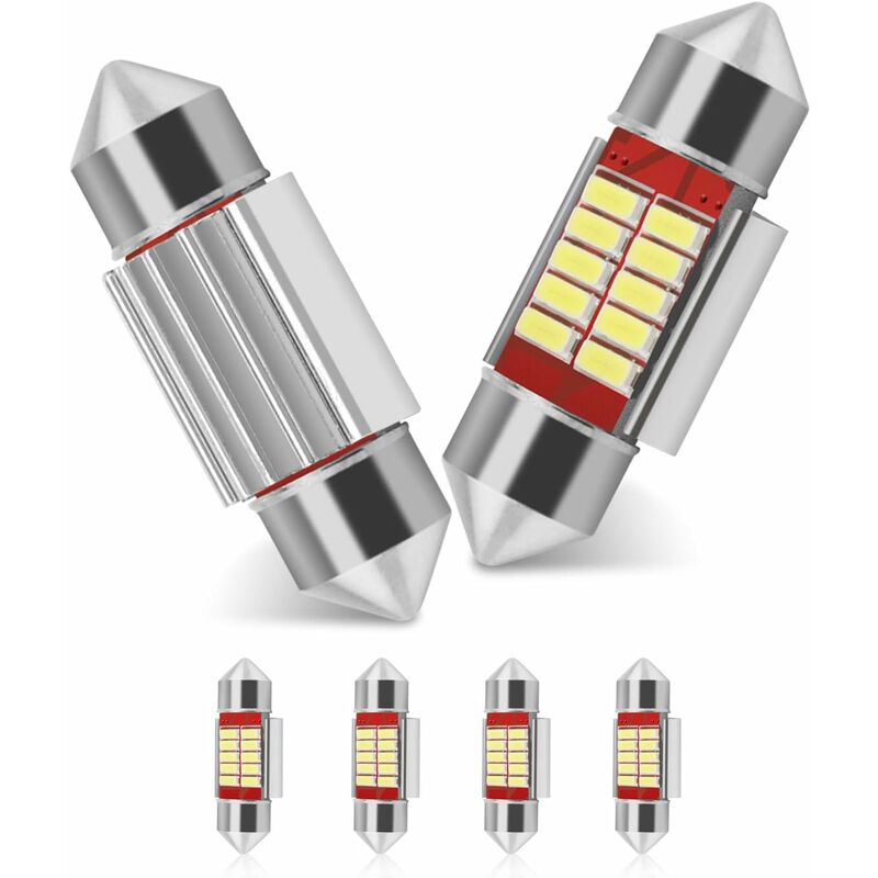 Tipo - Confezione da 12, 31mm 12-SMD, solo per veicoli DC 12V 【Temperatura colore】Bianco Xenon, 6000~7000K, lampadine LED ultra luminose, 12V 300LM, illuminazione puntamento a 180 gradi 【Installazione semplice】Sostituzione diretta, tempi di risposta on/off più rapidi e resistenza alle vibrazioni 【Applicazione】Perfetto per luci interne auto, lampadine a cupola a LED, luci per specchietti di cortesia o vano di carico luci, luce targa a Led, lampadine da lettura a Led, luci di cortesia laterali