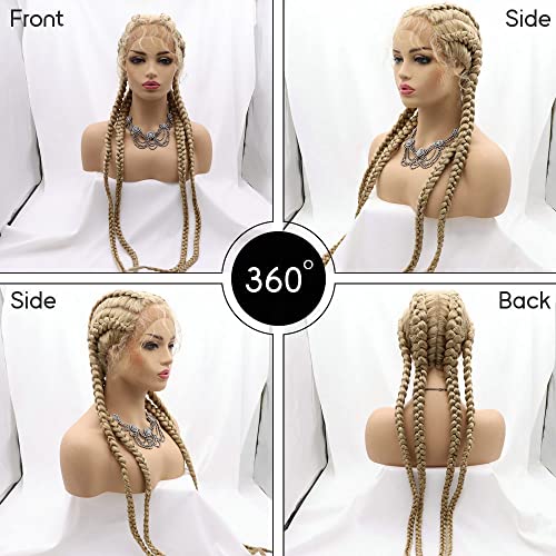 SereneWig, Parrucca bionda con 4 trecce, con piccole ciocche sull'attaccatura, sintetica, con attaccatura frontale in tulle, per donne, cosplay, festival, feste, drag queen