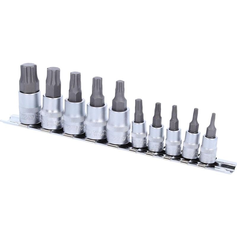 Torx PLUS Attacco quadro femmina a norma DIN 3120 / ISO 1174 con sede per sfera di tenuta Con inserto nichelato inserito a pressione Per utilizzo manuale Cromata opaca Cromo-vanadio Azionamento quadro in pollici 1/4 + 3/8 Lunghezza totale L in mm 48.0 Standard DIN 3120, ISO 1174 Profilo 1 TORX PLUS Pezzi in set 10 Peso del tessuto 344 Ricezione in pollici 1/4 - 3/8 Imballaggio Clipleiste aus Metall Dimensioni dell'imballaggio 1 Forma gerändelt Materiale1 Feinster Chrom Vanadium Stahl, matt satiniert verchromt