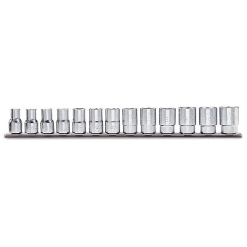 Serie di 13 chiavi a bussola a mano bocca poligonale (art. 910AS) su supporto 1/4-5/16-11/32-3/8-7/16 1/2-9/16-19/32-5/8-11/16 3/4-13/16-7/8 g 751