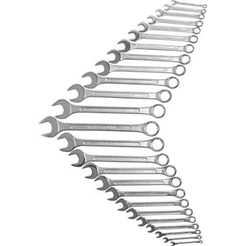 Fucinatura a caldo Cromato, teste lucidate a specchio Estremità dell'anello inclinata a 15° Profilo lato anello: poligonale Oggetto della fornitura: Chiave combinata anello-forchetta 6 mm Chiave combinata anello-forchetta 7 mm Chiave combinata anello-forchetta 8 mm Chiave combinata anello-forchetta 9 mm Chiave combinata anello-forchetta 10 mm Chiave combinata anello-forchetta 11 mm Chiave combinata anello-forchetta 12 mm Chiave combinata anello-forchetta 13 mm Chiave combinata anello-forchetta 14 mm Chiave combinata anello-forchetta 15 mm Chiave combinata anello-forchetta 16 mm Chiave combinata anello-forchetta 17 mm Chiave combinata anello-forchetta 18 mm Chiave combinata anello-forchetta 19 mm Chiave combinata anello-forchetta 20 mm Chiave combinata anello-forchetta 21 mm Chiave combinata anello-forchetta 22 mm Chiave combinata anello-forchetta 23 mm Chiave combinata anello-forchetta 24 mm Chiave combinata anello-forchetta 25 mm Chiave combinata anello-forchetta 26 mm Chiave