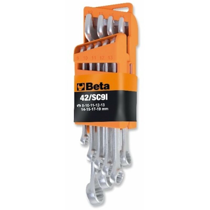 Serie di 9 chiavi combinate con supporto compatto Chiave combinata elegante e snella, alleggerita nelle linee e più leggera al tatto, con spessori delle teste ridotti al minimo possibile per intervenire correttamente in ogni spazio. Caratteristiche: • Coppie di serraggio più che doppie rispetto ai requisiti della norma ISO 1711. Codice prodotto Art. 000421087 42/SC9I Serie di 9 chiavi combinate con supporto compatto8-10-11-12-13-14-15-17-19 mm