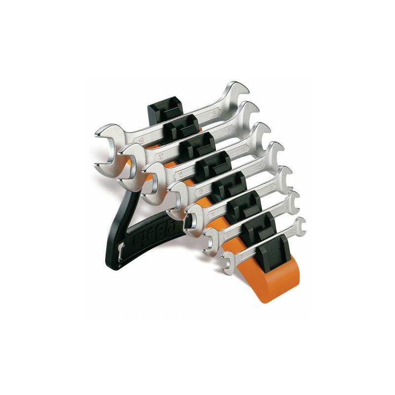 Art. 55/SP7 serie da 7 pezzi esecuzione cromata, teste lucide. UNI 6736 - DIN 3110 Misura 6x7÷18x19 mm Con supporto compatto e bloccaggio sicuro delle chiavi.