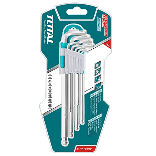 Serie 9 chiavi maschio esagonale piegate lunghe testa sferica TOTAL by INECO