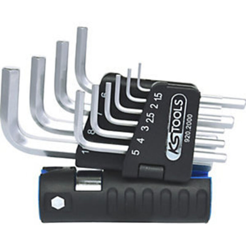 Esecuzione corta DIN / ISO 2936 Completamente temprata Impugnatura a doppia funzione (supporto / impugnatura a T) Cromate opache Acciaio speciale per utensili In resistente supporto a clip con impugnatura bicomponente Standard DIN ISO 2936 Attributo di funzione 1 durchgehend gehärtet Profilo 2 metrisch Profilo 1 Innen6-kant Pezzi in set 10 Peso del tessuto 350 Imballaggio Klapphalter mit Doppelfunktion (Halter/T-Griff) Dimensioni dell'imballaggio 1 Impugnatura 2-Komponentengriff Materiale1 Feinster Chrom Vanadium Stahl, matt satiniert verchromt