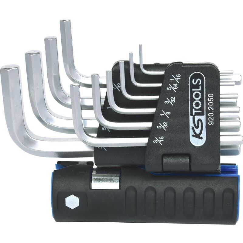Esecuzione corta DIN / ISO 2936 Misure in pollici Completamente temprata Impugnatura a doppia funzione (supporto / impugnatura a T) Cromate opache Acciaio speciale per utensili In resistente supporto a clip con impugnatura bicomponente Standard DIN ISO 2936 Attributo di funzione 1 durchgehend gehärtet Profilo 2 Zollmaße Profilo 1 Innen6-kant Pezzi in set 10 Peso del tessuto 500 Imballaggio Klapphalter mit Doppelfunktion (Halter/T-Griff) Dimensioni dell'imballaggio 1 Impugnatura 2-Komponentengriff Materiale1 Feinster Chrom Vanadium Stahl, matt satiniert verchromt