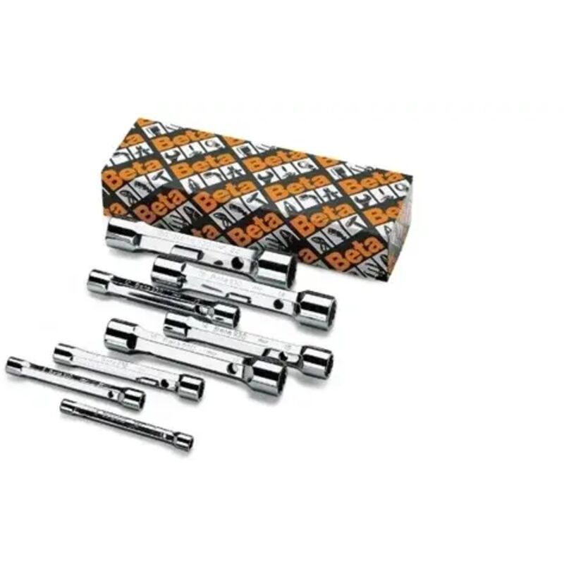Serie di 8 chiavi a tubo doppie poligonali serie pesante (art. 930). Profilo: Poligonale Unità di misura: Millimetri Trattamento: Cromato Tipologia: Doppia Serie: Pesante Contenuto serie: 6x7-8x9-10x11-12x13-14x15-16x17-18x19-20x22 mm - beta 940/1-940 /2