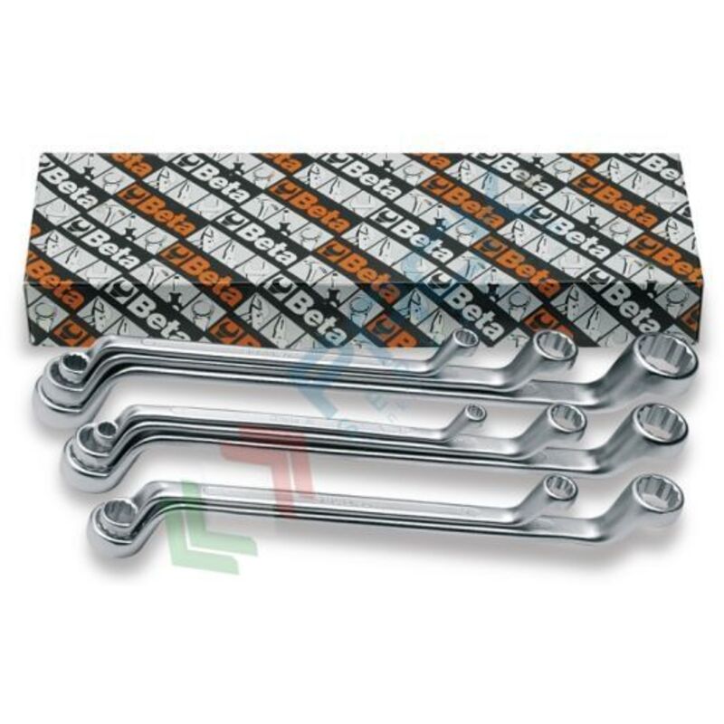 Serie di 12 chiavi poligonali Beta doppie curve (art. 90) Misure: 6x7 - 8x9 - 10x11 - 12x13 - 14x15 - 16x17 - 18x19 - 20x22 - 21x23 - 24x27 - 25x28 - 30x32 mm Peso: 2,8 Kg