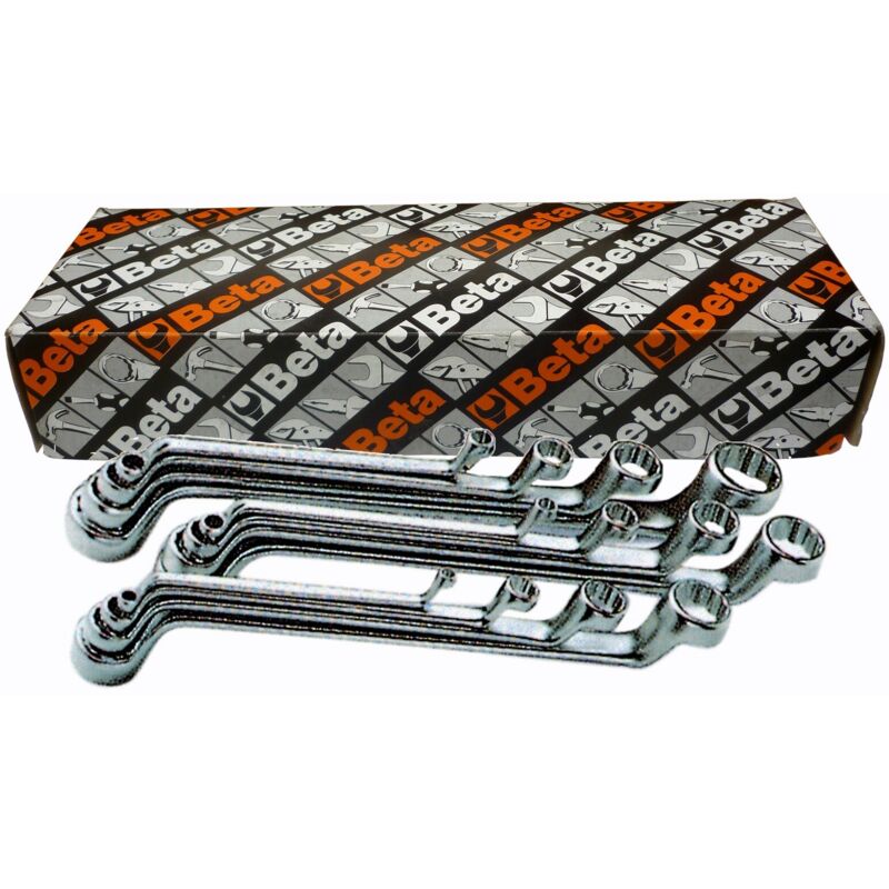 Art. 90/S13 serie da 13 pezzi doppie curve esecuzione cromata, teste lucide. UNI 6740 - DIN 838 Misura 6x7 - 8x9 -10x11 - 12x13 - 14x15 - 16x17 - 18x19 - 20x22 - 21x23 - 24x26 - 25x28 - 27x29 - 30x32 mm