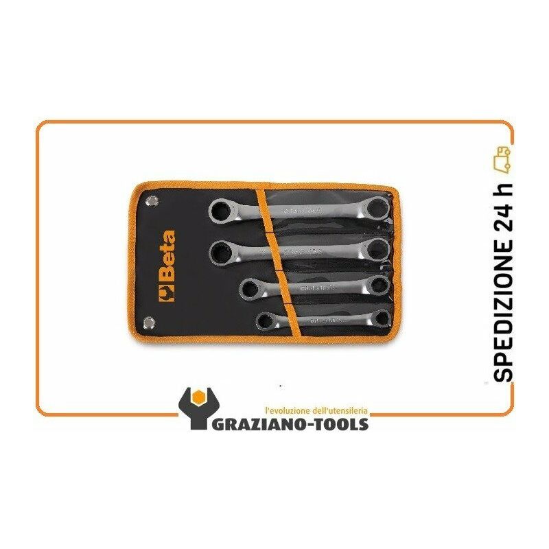 Serie di 4 chiavi poligonali doppie diritte a cricchetto (art. 195AS) in busta 5/16x3/8 - 7/16x1/2 - 9/16x5/8 - 11/16x3/4