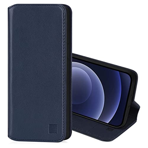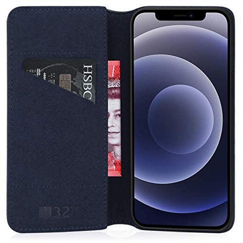 32nd Serie Classica 2.0 - Custodia a Portafoglio in Pelle Vera per Apple iPhone 12 (6.1") / iPhone 12 PRO (6.1"), Case in Pelle con Comparti, Chiusura Magnetica e Supporto Integrato - Blu Navy