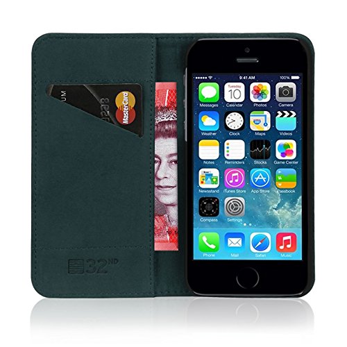 32nd Serie Classica - Custodia a Portafoglio in Pelle Vera per Apple iPhone 5, 5S & SE (2016), Case con Diversi Comparti, Chiusura Magnetica e Supporto Integrato - Verde Cacciatore