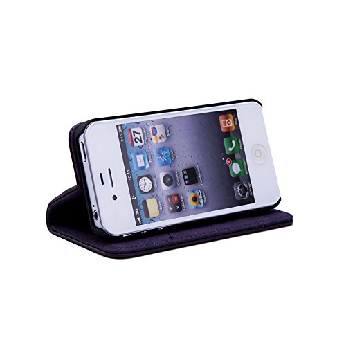 32nd Serie Classica - Custodia a Portafoglio in Pelle Vera per Apple iPhone 4 & 4S, Case Realizzato in Pelle Premium con Diversi Comparti, Chiusura Magnetica e Supporto integrato - Melanzana
