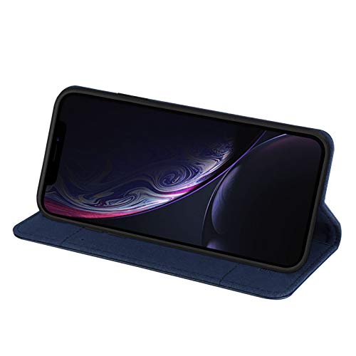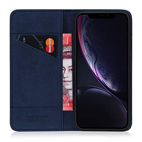 32nd Serie Classica - Custodia a Portafoglio in Pelle Vera per Apple iPhone XR, Case Realizzato in Pelle Premium con Diversi Comparti, Chiusura Magnetica e Supporto integrato - Blu navy