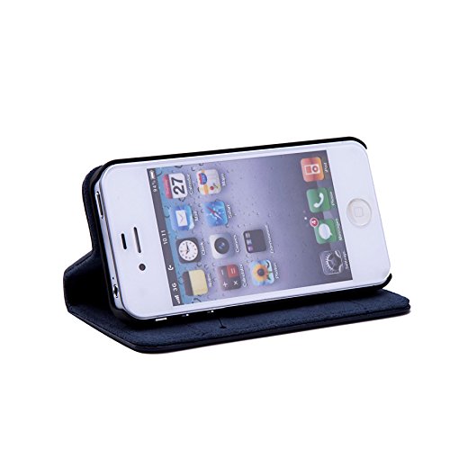 32nd Serie Classica - Custodia a Portafoglio in Pelle Vera per Apple iPhone 4 & 4S, Case Realizzato in Pelle Premium con Diversi Comparti, Chiusura Magnetica e Supporto integrato - Blu navy