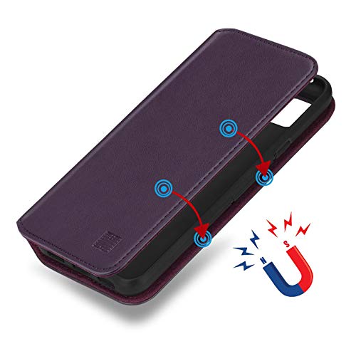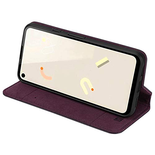 32nd Serie Classica 2.0 - Custodia a Portafoglio in Pelle Vera per Google Pixel 4A, Case Realizzato in Pelle Premium con Diversi Comparti, Chiusura Magnetica e Supporto Integrato - Melanzana