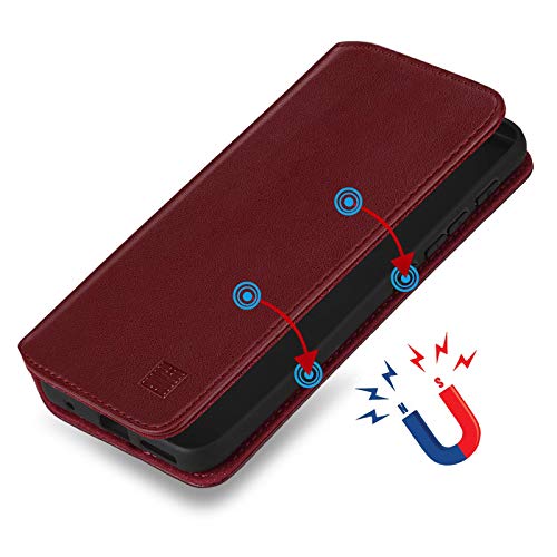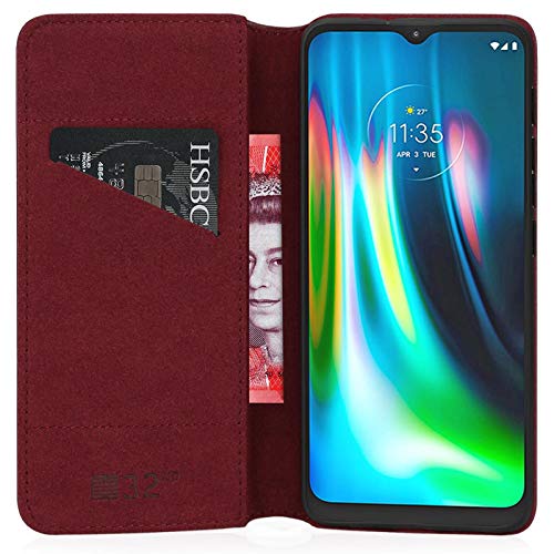 32nd Serie Classica 2.0 - Custodia a Portafoglio in Pelle Vera per Motorola Moto E7 Plus, Case Realizzato in Pelle Premium con Diversi Comparti, Chiusura Magnetica e Supporto Integrato - Borgogna