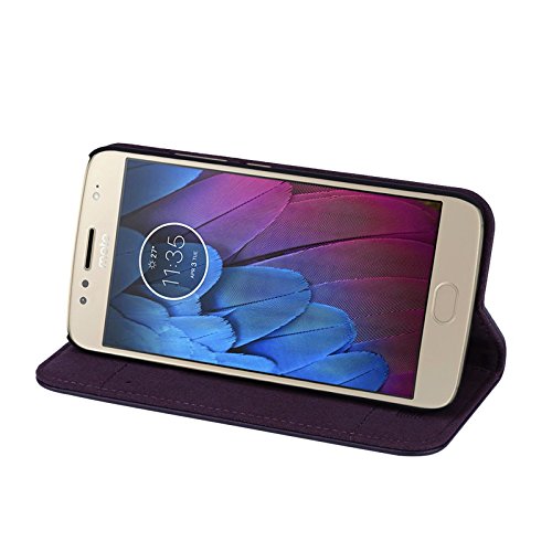 32nd Serie Classica - Custodia a Portafoglio in Pelle Vera per Motorola Moto G5S, Case Realizzato in Pelle Premium con Diversi Comparti, Chiusura Magnetica e Supporto integrato - Melanzana