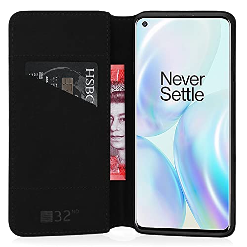 32nd Serie Classica 2.0 - Custodia a Portafoglio in Pelle Vera per OnePlus 8, Case Realizzato in Pelle Premium con Diversi Comparti, Chiusura Magnetica e Supporto Integrato - Nero