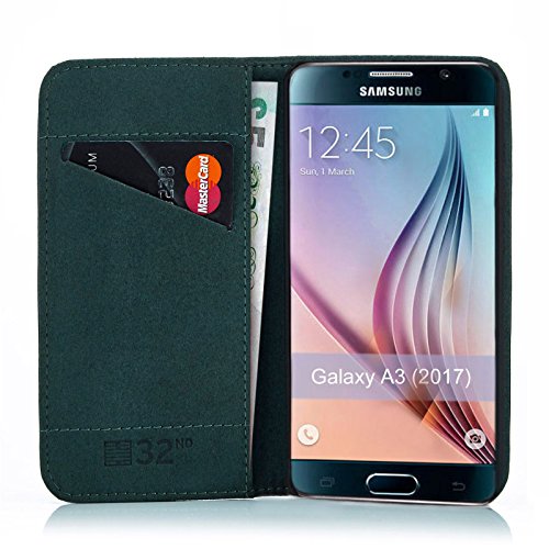 32nd Serie Classica - Custodia a Portafoglio in Pelle Vera per Samsung Galaxy A3 (2017), Case con Diversi Comparti, Chiusura Magnetica e Supporto integrato - Verde cacciatore