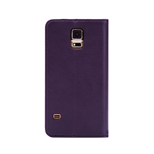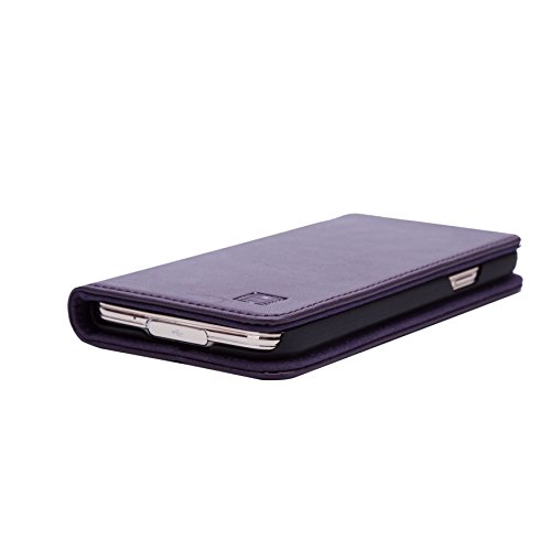 32nd Serie Classica - Custodia a Portafoglio in Pelle Vera per Samsung Galaxy S5, Case Realizzato in Pelle Premium con Diversi Comparti, Chiusura Magnetica e Supporto Integrato - Melanzana