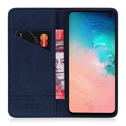 32nd Serie Classica - Custodia a Portafoglio in Pelle Vera per Samsung Galaxy S10e, Case Realizzato in Pelle Premium con Diversi Comparti, Chiusura Magnetica e Supporto Integrato - Blu Navy