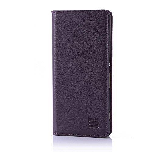 32nd Serie Classica - Custodia a Portafoglio in Pelle Vera per Sony Xperia XA, Case Realizzato in Pelle Premium con Diversi Comparti, Chiusura Magnetica e Supporto integrato - Melanzana