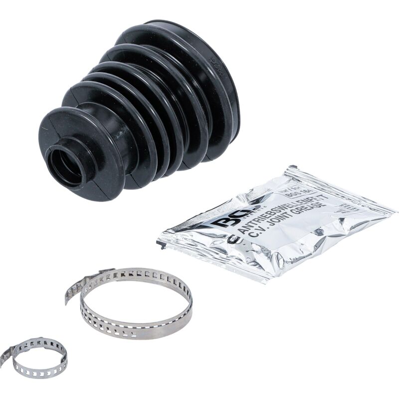 Adatto anche come ricambio per numerosi tipi di collari degli assi Permette di effettuare riparazioni risparmiando costi e tempo A 3 livelli, con diametro del lato del giunto di circa 80 - 90 - 100 mm (non teso) Con nasello di tenuta interno su tutti e tre i livelli Diametro sul lato dell'albero circa 30 mm Lunghezza circa 128 mm Materiale estremamente elastico e resistente Particolarmente adatto per lavori di montaggio con il divaricatore di collari degli assi BGS 162 Contiene grasso per tutti i tipi di snodi per alberi motore Collari di serraggio in versione professionale multilivello Peso del tessuto 0.332 Dimensioni dell'imballaggio 1 Peso lordo 332 g