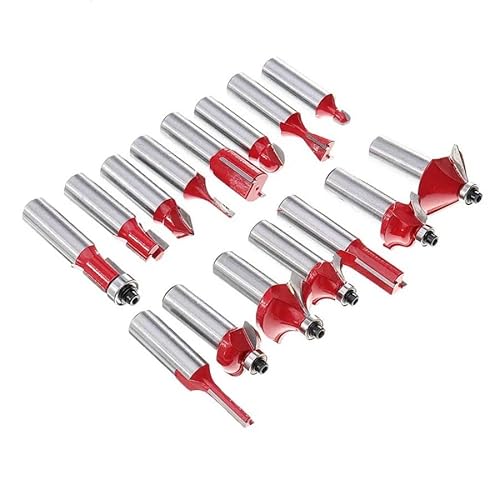 Assortimento di 15 frese per legno per scanalare (dritte, coda di rondine, conica a "v"...) e per rifilare (dritta, a raggio concavo, a raggio convesso, sagoma roman, conica...) Realizzate in acciaio con taglienti in widia e codolo da 6 mm. Fornite in cassetta di legno.