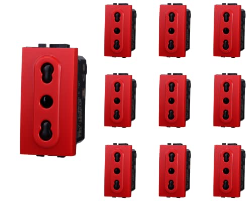 Serie Frutti Prese Interruttori Deviatori, Compatibile Con Bticino Living Light Nero (10 pcs Presa Bipasso Rosso)