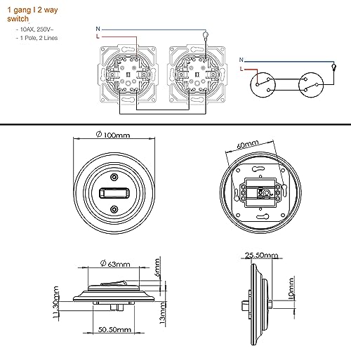 Tecnica: tensione di rete di 250 V. Corrente nominale: 10 A.