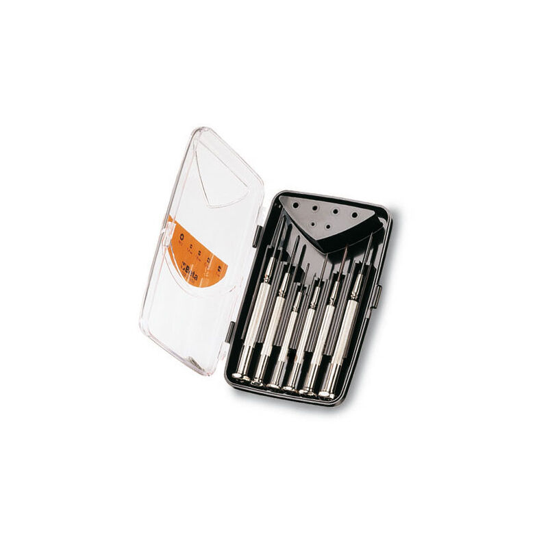 Dati tecnici Produttore: Beta Codice produttore: BE1229LP/A6 Numero di elementi del set: 6 Set di cacciaviti piatti di precisione, 6 pezzi. Set di cacciaviti piatti di precisione in scatola, 1,2-3 mm, 6 pezzi. 012290300 è un set di 6 cacciaviti piatti di precisione (serie 1229LP) in scatola da 1,2-1,4-1,8-2-2,4-3 mm. Si tratta di piccoli cacciaviti della famiglia dei cacciaviti di precisione specializzati. Sono caratterizzati da dimensioni ridotte del gambo e della punta, non richiedono molto sforzo e sono comodi da utilizzare per lavori precisi su piccoli elementi. Sono destinati a lavori precisi nel modellismo, nell'elettronica e nella gioielleria. La maggior parte dei modelli di avvitatori di precisione sono dotati anche di testa rotante, che consente di lavorare senza ruotare l'intero avvitatore e un migliore controllo della coppia.** Foto illustrative